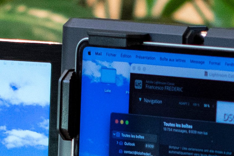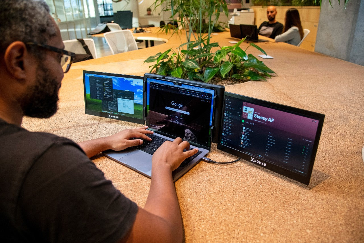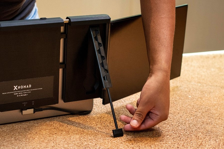 Einfach zu installieren verwandelt der X3 Pro® Triple Bildschirm Ihren Laptop in weniger als 15 Sekunden in eine mobile Multi-Screen-Arbeitsstation.