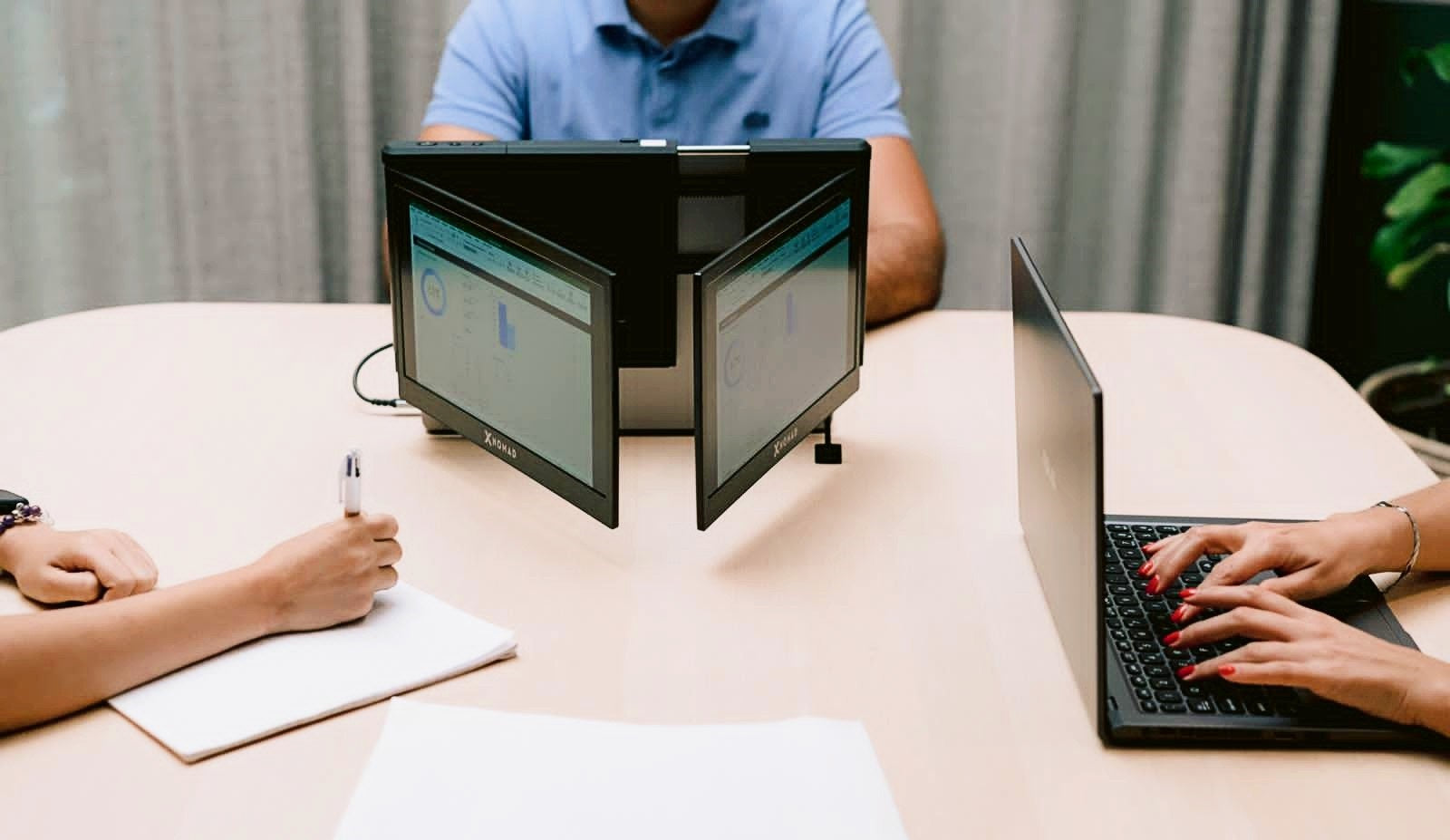 Egal, ob Sie Ihren Arbeitsbereich erweitern, Informationen mit Ihren Kollegen teilen, Ihre Kunden mit dynamischen Präsentationen beeindrucken oder Dokumente im Hochformat ansehen möchten – der X3 Pro® Triple Bildschirm passt sich all Ihren beruflichen Anforderungen an.